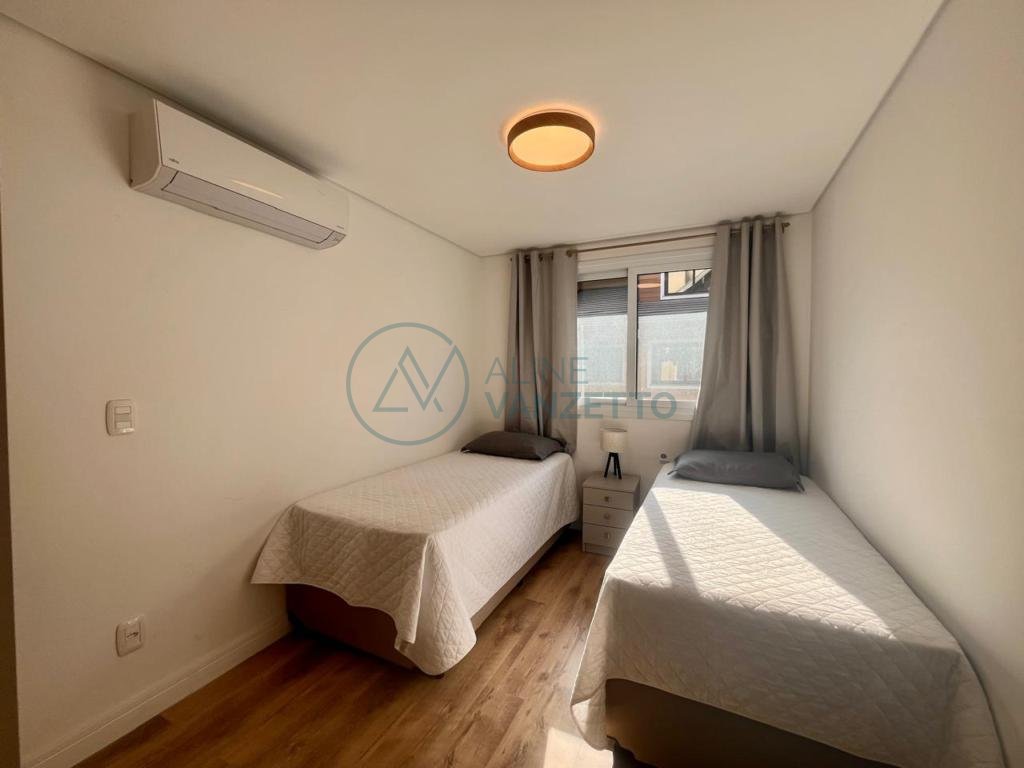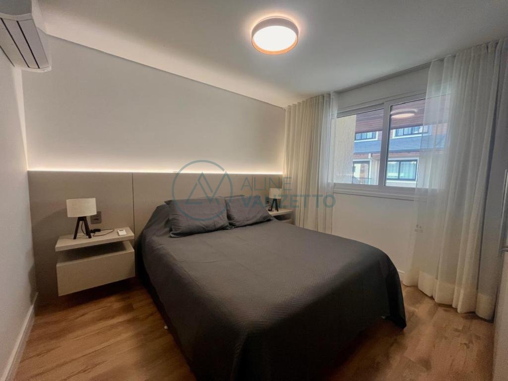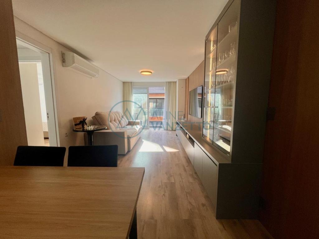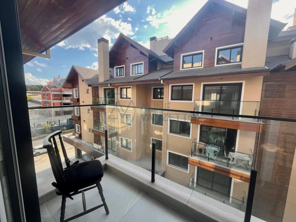 No Centro de Canela, excelente apartamento novo com 2 dormitórios, sendo 1 suíte, mobiliado e equipado, banho social, living 2 ambientes com sacada e espera para lareira, cozinha americana com churrasqueira, lavanderia, esperas para calefação, água quente e splits instalados, esquadrias em pvc com vidro duplo, 1 vaga de garagem. Alto padrão de construção, luz e ventilação naturais em todas as peças, andar alto e ótima posição solar, play ground e telemetria com controle de acesso por app.