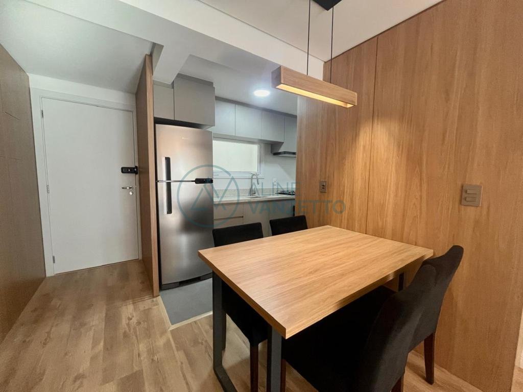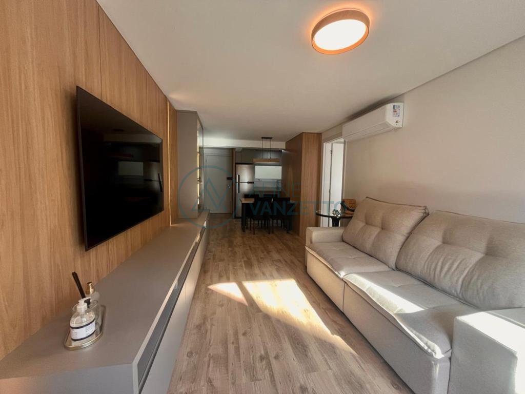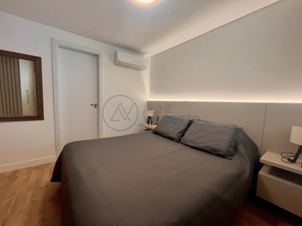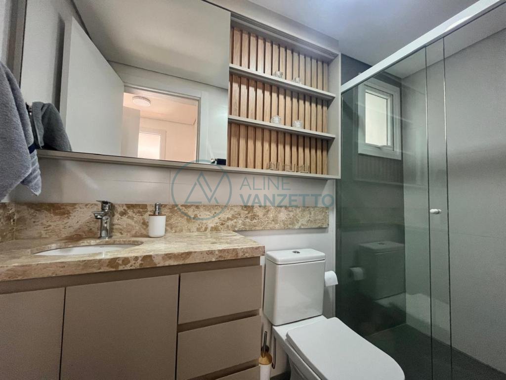 No Centro de Canela, excelente apartamento novo com 2 dormitórios, sendo 1 suíte, mobiliado e equipado, banho social, living 2 ambientes com sacada e espera para lareira, cozinha americana com churrasqueira, lavanderia, esperas para calefação, água quente e splits instalados, esquadrias em pvc com vidro duplo, 1 vaga de garagem. Alto padrão de construção, luz e ventilação naturais em todas as peças, andar alto e ótima posição solar, play ground e telemetria com controle de acesso por app.